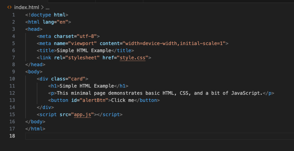 HTML (HyperText Markup Language) is the skeleton of a website. It defines the content and structure headings, paragraphs, images, links, forms, and buttons.