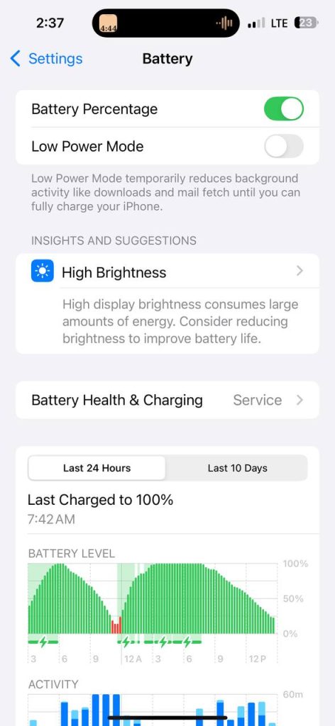 - Turning on Low Power Mode when battery is low
